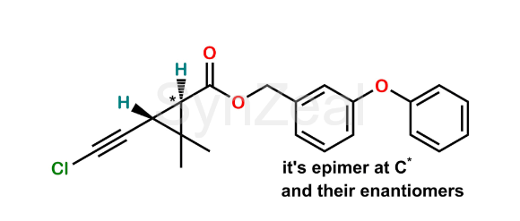 Nome Químico: 3-(Phenoxyphenyl)methyl (1RS,2RS)-2-(chloroethynyl)-3,3-dimethylcyclopropane-1-carboxylate (as per EP) ; 3-Phenoxybenzyl 3-(chloroethynyl)-2,2-dimethylcyclopropane-1-carboxylate (as per USP)
