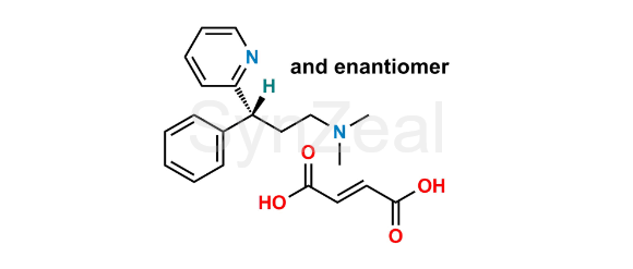 Nome Químico: (3RS)-N,N-Dimethyl-3-phenyl-3-(pyridin-2-yl)propan-1-amine (Z)-butenedioate (as per EP) ; N,N-Dimethyl-3-phenyl-3-(2-pyridyl)propylamine hydrogen maleate (as per USP)