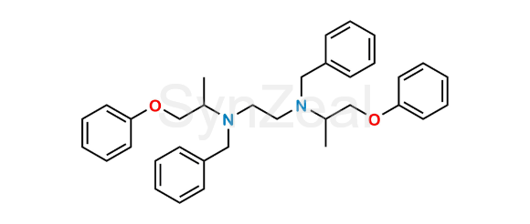 Phenoxybenzamine Impurity H is chemically N1,N2-Dibenzyl-N1,N2-bis(1-phenoxypropan-2-yl)ethane-1,2-diamine. Phenoxybenzamine Impurity H is supplied with detailed characterization data compliant with regulatory guideline. Phenoxybenzamine Impurity H can be used for the analytical method development, method validation (AMV), Quality Controlled (QC) application for Abbreviated New Drug Application (ANDA) or during commercial production of Phenoxybenzamine.