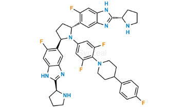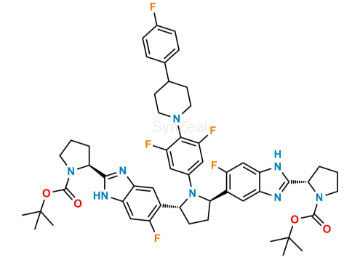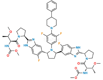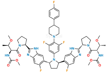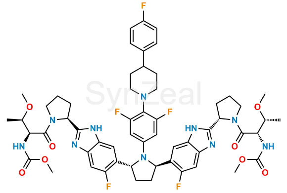 Nome Químico: Dimethyl ((2S,2'S,3R,3'R)-((2S,2'S)-(((2R,5R)-1-(3,5-difluoro-4-(4-(4-fluorophenyl)piperidin-1-yl)phenyl)pyrrolidine-2,5-diyl)bis(5-fluoro-1H-benzo[d]imidazole-6,2-diyl))bis(pyrrolidine-2,1-diyl))bis(3-methoxy-1-oxobutane-1,2-diyl))dicarbamate
