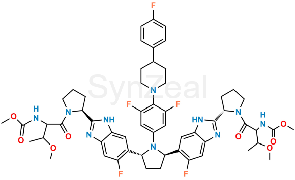 Nome Químico: Dimethyl (((2S,2'S)-(((2R,5R)-1-(3,5-difluoro-4-(4-(4-fluorophenyl)piperidin-1-yl)phenyl)pyrrolidine-2,5-diyl)bis(5-fluoro-1H-benzo[d]imidazole-6,2-diyl))bis(pyrrolidine-2,1-diyl))bis(3-methoxy-1-oxobutane-1,2-diyl))dicarbamate
