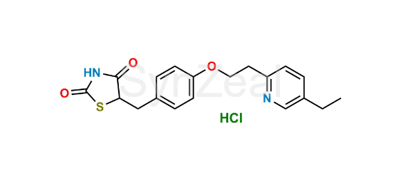 Nome Químico: (5RS)-5-[[4-[2-(5-Ethylpyridin-2-yl)ethoxy]phenyl]methyl]thiazolidine-2,4-dione hydrochloride (as per EP) ; (±)-5-[p-[2-(5-Ethyl-2-pyridyl)ethoxy]benzyl]-2,4-thiazolidinedione monohydrochloride (as per USP)