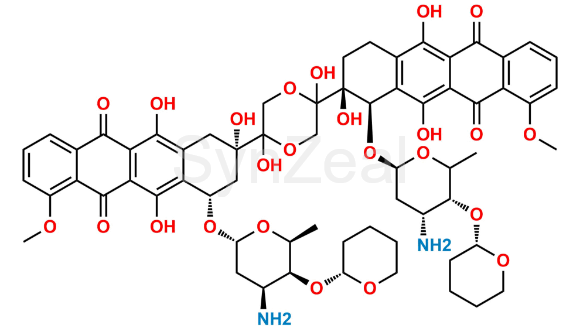 Nome Químico: (8S,10S)-10-(((2R,4S,5S,6S)-4-amino-6-methyl-5-(((R)-tetrahydro-2H-pyran-2-yl)oxy)tetrahydro-2H-pyran-2-yl)oxy)-8-(5-((1R,2S)-1-(((2R,4R,5R)-4-amino-6-methyl-5-(((S)-tetrahydro-2H-pyran-2-yl)oxy)tetrahydro-2H-pyran-2-yl)oxy)-2,5,12-trihydroxy-10-methoxy-6,11-dioxo-1,2,3,4,6,11-hexahydrotetracen-2-yl)-2,5-dihydroxy-1,4-dioxan-2-yl)-6,8,11-trihydroxy-1-methoxy-7,8,9,10-tetrahydrotetracene-5,12-dione