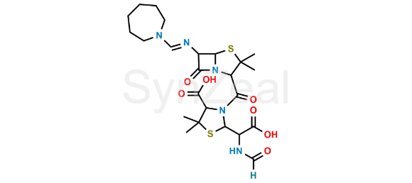 Pivmecillinam Impurity 3 is chemically (E)-3-(6-((azepan-1-ylmethylene)amino)-3,3-dimethyl-7-oxo-4-thia-1-azabicyclo[3.2.0]heptane-2-carbonyl)-2-(carboxy(formamido)methyl)-5,5-dimethylthiazolidine-4-carboxylic acid. Pivmecillinam Impurity 3 is supplied with detailed characterization data compliant with regulatory guideline. Pivmecillinam Impurity 3 can be used for the analytical method development, method validation (AMV), Quality Controlled (QC) application for Abbreviated New Drug Application (ANDA) or during commercial production of Pivmecillinam.