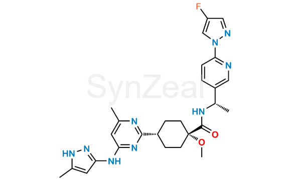 Nome Químico: (1s,4R)-N-((S)-1-(6-(4-Fluoro-1H-pyrazol-1-yl)pyridin-3-yl)ethyl)-1-methoxy-4-(4-methyl-6-((5-methyl-1H-pyrazol-3-yl)amino)pyrimidin-2-yl)cyclohexane-1-carboxamide