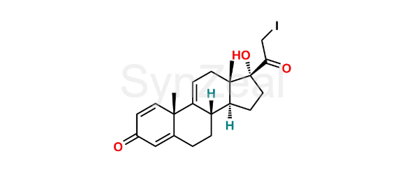 Prednisolone Impurity 26 is chemically (8S,10S,13S,14S,17R)-17-hydroxy-17-(2-iodoacetyl)-10,13-dimethyl-6,7,8,10,12,13,14,15,16,17-decahydro-3H-cyclopenta[a]phenanthren-3-one. Prednisolone Impurity 26 is supplied with detailed characterization data compliant with regulatory guideline. Prednisolone Impurity 26 can be used for the analytical method development, method validation (AMV), Quality Controlled (QC) application for Abbreviated New Drug Application (ANDA) or during commercial production of Prednisolone.