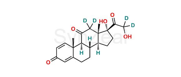 Prednisone D4 is chemically (8S,9S,10R,13S,14S,17R)-17-hydroxy-17-(2-hydroxyacetyl-d2)-10,13-dimethyl-7,8,9,10,12,13,14,15,16,17-decahydro-3H-cyclopenta[a]phenanthrene-3,11(6H)-dione-12,12-d2. Prednisone D4 is supplied with detailed characterization data compliant with regulatory guideline. Prednisone D4 can be used for the analytical method development, method validation (AMV), Quality Controlled (QC) application for Abbreviated New Drug Application (ANDA) or during commercial production of Prednisone.