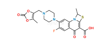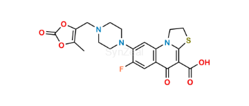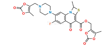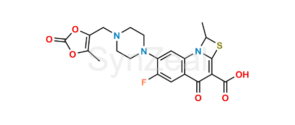 Nome Químico: 6-fluoro-1-methyl-7-(4-((5-methyl-2-oxo-1,3-dioxol-4-yl)methyl)piperazin-1-yl)-4-oxo-1H,4H-[1,3]thiazeto[3,2-a]quinoline-3-carboxylic acid