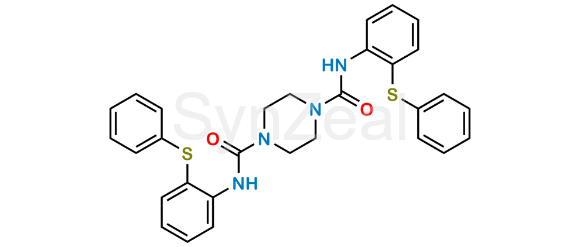 Quetiapine Impurity 8 is chemically N1,N4-bis(2-(phenylthio)phenyl)piperazine-1,4-dicarboxamide. Quetiapine Impurity 8 is supplied with detailed characterization data compliant with regulatory guideline. Quetiapine Impurity 8 can be used for the analytical method development, method validation (AMV), Quality Controlled (QC) application for Abbreviated New Drug Application (ANDA) or during commercial production of Quetiapine.