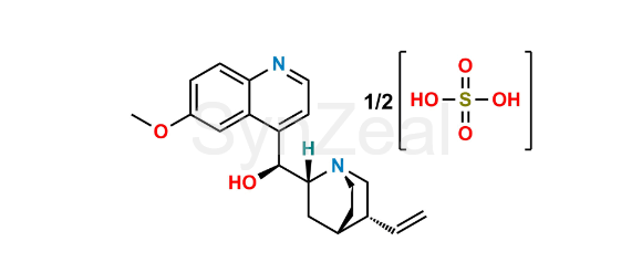 Nome Químico: Bis[(S)-[(2R,4S,5R)-5-ethenyl-1-azabicyclo[2.2.2]oct-2-yl](6-methoxyquinolin-4-yl)methanol] sulfate (as per EP) ; Cinchonan-9-ol, 6′-methoxy-, (9S)-, sulfate (2:1) (salt) (as per USP)