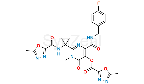Nome Químico: 4-((4-fluorobenzyl)carbamoyl)-1-methyl-2-(2-(5-methyl-1,3,4-oxadiazole-2-carboxamido)propan-2-yl)-6-oxo-1,6-dihydropyrimidin-5-yl 5-methyl-1,3,4-oxadiazole-2-carboxylate