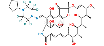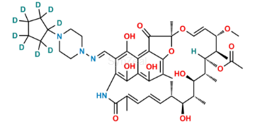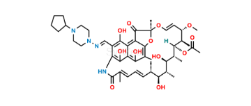 Rifapentine is chemically 3-[[(4-cyclopentyl-1-piperazinyl)imino]methyl]-Rifamycin. Rifapentine is supplied with detailed characterization data compliant with regulatory guideline. Rifapentine can be used for the analytical method development, method validation (AMV), Quality Controlled (QC) application for Abbreviated New Drug Application (ANDA) or during commercial production of Rifapentine.