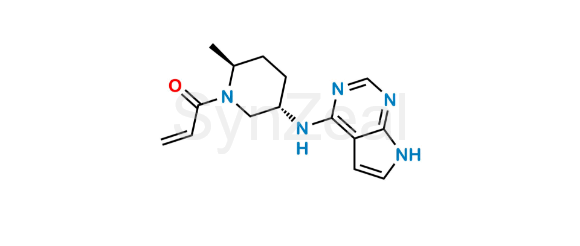 Ritlecitinib Impurity 12 is chemically 1-((2S,5S)-5-((7H-pyrrolo[2,3-d]pyrimidin-4-yl)amino)-2-methylpiperidin-1-yl)prop-2-en-1-one. Ritlecitinib Impurity 12 is supplied with detailed characterization data compliant with regulatory guideline. Ritlecitinib Impurity 12 can be used for the analytical method development, method validation (AMV), Quality Controlled (QC) application for Abbreviated New Drug Application (ANDA) or during commercial production of Ritlecitinib.