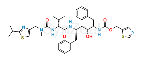 Nome Químico: thiazol-5-ylmethyl ((2R,3R,5R)-3-hydroxy-5-((R)-2-(3-((2-isopropylthiazol-4-yl)methyl)-3-methylureido)-3-methylbutanamido)-1,6-diphenylhexan-2-yl)carbamate