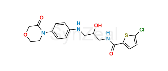 Rivaroxaban Open-Ring Acid Impurity is chemically 5-chloro-N-(2-hydroxy-3-((4-(3-oxomorpholino)phenyl)amino)propyl)thiophene-2-carboxamide. Rivaroxaban Open-Ring Acid Impurity is supplied with detailed characterization data compliant with regulatory guideline. Rivaroxaban Open-Ring Acid Impurity can be used for the analytical method development, method validation (AMV), Quality Controlled (QC) application for Abbreviated New Drug Application (ANDA) or during commercial production of Rivaroxaban.