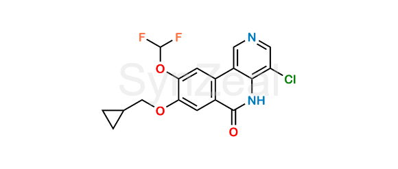 Roflumilast Cyclized Impurity is chemically 4-chloro-8-(cyclopropylmethoxy)-9-(difluoromethoxy)benzo[c][1,6]naphthyridin-6(5H)-one. Roflumilast Cyclized Impurity is supplied with detailed characterization data compliant with regulatory guideline. Roflumilast Cyclized Impurity can be used for the analytical method development, method validation (AMV), Quality Controlled (QC) application for Abbreviated New Drug Application (ANDA) or during commercial production of Roflumilast.