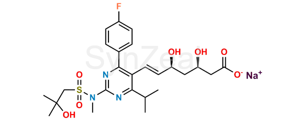 Nome Químico: Sodium (3R,5S,6E)-7-[2-(2,N-dimethyl-2-hydroxypropane-1-sulfonamido)-4-(4-fluorophenyl)-6-(propan-2-yl)pyrimidin-5-yl]-3,5-dihydroxyhept-6-enoate (as per EP)Sodium (3R,5S,E)-7-{4-(4-fluorophenyl)-2-[(2-hydroxy-N,2-dimethylpropyl)sulfonamide]-6-isopropylpyrimidin-5-yl}-3,5-dihydroxyhept-6-enoate salt (as per USP)