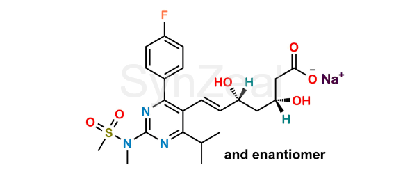 Nome Químico: (3RS,5RS,6E)-7-[4-(4-fluorophenyl)-2-(N-methylmethanesulfonamido)-6-(propan-2-yl)pyrimidin-5-yl]-3,5-dihydroxyhept-6-enoic acid Sodium salt (as per EP)