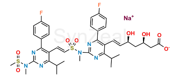 Nome Químico: (3R,5S,6E)-7-[4-(4-fluorophenyl)-2-[[[(E)-2-[4-(4-fluorophenyl)-6-(1-methylethyl)-2-[methyl(methylsulfonyl)amino]pyrimidin-5-yl]ethenyl]sulfonyl](methyl)amino]-6-(1-methylethyl)pyrimidin-5-yl]-3,5-dihydroxyhept-6-enoic acid sodium salt