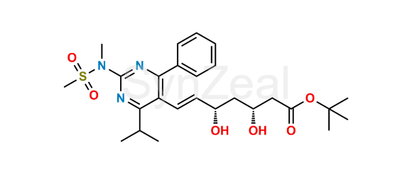 Rosuvastatin EP impurity M tert-butyl Ester is chemically Tert-butyl (3R,5S,E)-3,5-dihydroxy-7-(4-isopropyl-2-(N-methylmethylsulfonamido)-6-phenylpyrimidin-5-yl)hept-6-enoate. Rosuvastatin EP impurity M tert-butyl Ester is supplied with detailed characterization data compliant with regulatory guideline. Rosuvastatin EP impurity M tert-butyl Ester can be used for the analytical method development, method validation (AMV), Quality Controlled (QC) application for Abbreviated New Drug Application (ANDA) or during commercial production of Rosuvastatin.