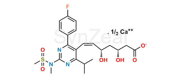 Rosuvastatin (Z)-Isomer is chemically (3R,5S,6Z)-7-[4-(4-Fluorophenyl)-6-(1-methylethyl)-2-[methyl (methyl sulfonyl)amino]-5-pyrimidinyl]-3,5-dihydroxy- 6-heptenoic acid. It is also known as (3R,5S, 6Z)-Rosuvastatin. Rosuvastatin (Z)-Isomer is supplied with detailed characterization data compliant with regulatory guideline. Rosuvastatin (Z)-Isomer can be used for the analytical method development, method validation (AMV), Quality Controlled (QC) application for Abbreviated New Drug Application (ANDA) or during commercial production of Rosuvastatin.