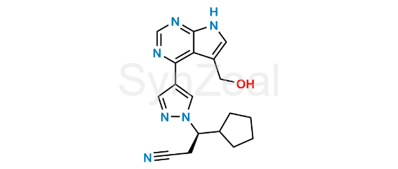 Ruxolitinib Impurity 10 is chemically (R)-3-cyclopentyl-3-(4-(5-(hydroxymethyl)-7H-pyrrolo[2,3-d]pyrimidin-4-yl)-1H-pyrazol-1-yl)propanenitrile. Ruxolitinib Impurity 10 is supplied with detailed characterization data compliant with regulatory guideline. Ruxolitinib Impurity 10 can be used for the analytical method development, method validation (AMV), Quality Controlled (QC) application for Abbreviated New Drug Application (ANDA) or during commercial production of Ruxolitinib.