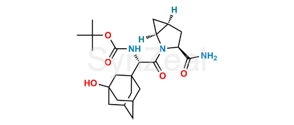 Saxagliptin Impurity 46 is chemically Tert-butyl ((1S)-2-((1S,3S,5S)-3-carbamoyl-2-azabicyclo[3.1.0]hexan-2-yl)-1-((1r,3S)-3-hydroxyadamantan-1-yl)-2-oxoethyl)carbamate. Saxagliptin Impurity 46 is supplied with detailed characterization data compliant with regulatory guideline. Saxagliptin Impurity 46 can be used for the analytical method development, method validation (AMV), Quality Controlled (QC) application for Abbreviated New Drug Application (ANDA) or during commercial production of Saxagliptin.