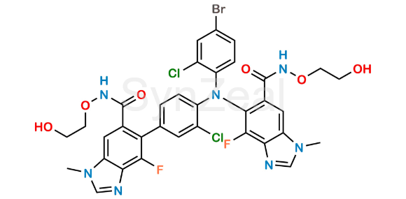 Nome Químico: 5-((4-Bromo-2-chlorophenyl)(2-chloro-4-(4-fluoro-6-((2-hydroxyethoxy)carbamoyl)-1-methyl-1H-benzo[d]imidazol-5-yl)phenyl)amino)-4-fluoro-N-(2-hydroxyethoxy)-1-methyl-1H-benzo[d]imidazole-6-carboxamide