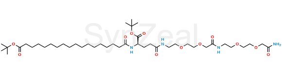 Semaglutide Impurity 22 is chemically Tert-butyl (R)-1-amino-22-(tert-butoxycarbonyl)-1,10,19,24-tetraoxo-3,6,12,15-tetraoxa-9,18,23-triazahentetracontan-41-oate. Semaglutide Impurity 22 is supplied with detailed characterization data compliant with regulatory guideline. Semaglutide Impurity 22 can be used for the analytical method development, method validation (AMV), Quality Controlled (QC) application for Abbreviated New Drug Application (ANDA) or during commercial production of Semaglutide.