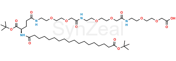 Semaglutide Impurity 23 is chemically (R)-31-(Tert-butoxycarbonyl)-52,52-dimethyl-10,19,28,33,50-pentaoxo-3,6,12,15,21,24,51-heptaoxa-9,18,27,32-tetraazatripentacontanoic acid. Semaglutide Impurity 23 is supplied with detailed characterization data compliant with regulatory guideline. Semaglutide Impurity 23 can be used for the analytical method development, method validation (AMV), Quality Controlled (QC) application for Abbreviated New Drug Application (ANDA) or during commercial production of Semaglutide.