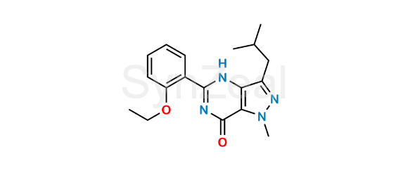 Sildenafil Impurity 3 is chemically 5-(2-Ethoxyphenyl)-3-isobutyl-1-methyl-1,4-dihydro-7H-pyrazolo[4,3-d]pyrimidin-7-one. Sildenafil Impurity 3 is supplied with detailed characterization data compliant with regulatory guideline. Sildenafil Impurity 3 can be used for the analytical method development, method validation (AMV), Quality Controlled (QC) application for Abbreviated New Drug Application (ANDA) or during commercial production of Sildenafil .