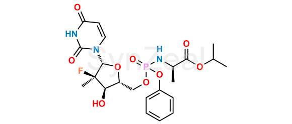 Sofosbuvir Impurity 95 is chemically Isopropyl ((((2R,3R,4R,5R)-5-(2,4-dioxo-3,4-dihydropyrimidin-1(2H)-yl)-4-fluoro-3-hydroxy-4-methyltetrahydrofuran-2-yl)methoxy)(phenoxy)phosphoryl)-D-alaninate. Sofosbuvir Impurity 95 is supplied with detailed characterization data compliant with regulatory guideline. Sofosbuvir Impurity 95 can be used for the analytical method development, method validation (AMV), Quality Controlled (QC) application for Abbreviated New Drug Application (ANDA) or during commercial production of Sofosbuvir.