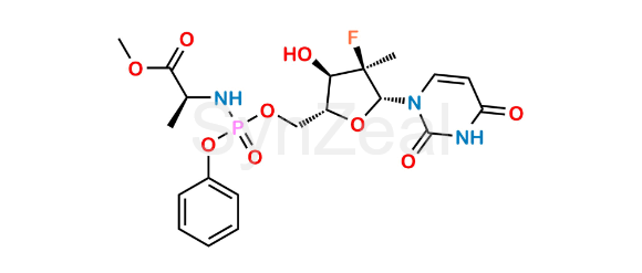 Sofosbuvir o-Desisopropyl o-Methyl Ester is chemically Methyl ((((2R,3R,4R,5R)-5-(2,4-dioxo-3,4-dihydropyrimidin-1(2H)-yl)-4-fluoro-3-hydroxy-4-methyltetrahydrofuran-2-yl)methoxy)(phenoxy)phosphoryl)-L-alaninate. Sofosbuvir o-Desisopropyl o-Methyl Ester is supplied with detailed characterization data compliant with regulatory guideline. Sofosbuvir o-Desisopropyl o-Methyl Ester can be used for the analytical method development, method validation (AMV), Quality Controlled (QC) application for Abbreviated New Drug Application (ANDA) or during commercial production of Sofosbuvir.