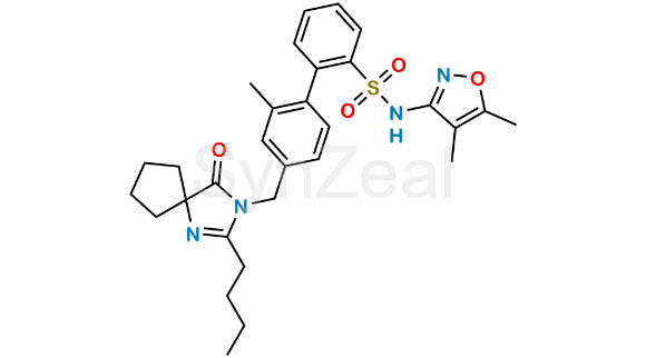 Nome Químico: 4'-((2-butyl-4-oxo-1,3-diazaspiro[4.4]non-1-en-3-yl)methyl)-N-(4,5-dimethylisoxazol-3-yl)-2'-methyl-[1,1'-biphenyl]-2-sulfonamide