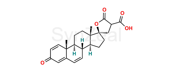 Spironolactone Impurity 6 is chemically (8R,9S,10R,13S,14S,17R)-10,13-Dimethyl-3,5'-dioxo-3,4',5',8,9,10,11,12,13,14,15,16-dodecahydro-3'H-spiro[cyclopenta[a]phenanthrene-17,2'-furan]-4'-carboxylic acid. Spironolactone Impurity 6 is supplied with detailed characterization data compliant with regulatory guideline. Spironolactone Impurity 6 can be used for the analytical method development, method validation (AMV), Quality Controlled (QC) application for Abbreviated New Drug Application (ANDA) or during commercial production of Spironolactone.