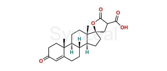 Spironolactone Impurity 7 is chemically (8R,9S,10R,13S,14S,17R)-10,13-Dimethyl-3,5'-dioxo-1,2,3,4',5',6,7,8,9,10,11,12,13,14,15,16-hexadecahydro-3'H-spiro[cyclopenta[a]phenanthrene-17,2'-furan]-4'-carboxylic acid. Spironolactone Impurity 7 is supplied with detailed characterization data compliant with regulatory guideline. Spironolactone Impurity 7 can be used for the analytical method development, method validation (AMV), Quality Controlled (QC) application for Abbreviated New Drug Application (ANDA) or during commercial production of Spironolactone.