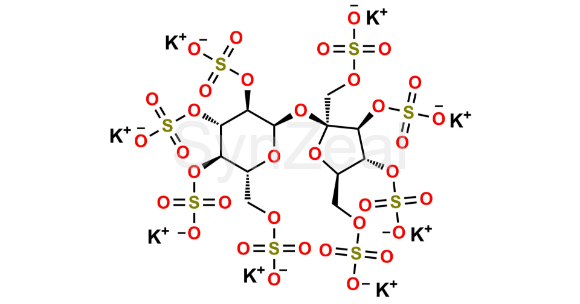 Sucralfate EP Impurity A (Potassium salt) is chemically Potassium (2R,3R,4S,5R,6R)-2-(((2S,3S,4R,5R)-3,4-bis(sulfonatooxy)-2,5-bis((sulfonatooxy)methyl)tetrahydrofuran-2-yl)oxy)-6-((sulfonatooxy)methyl)tetrahydro-2H-pyran-3,4,5-triyl tris(sulfate). It is also known as Sucrose Octasulfate Potassium Salt. Sucralfate EP Impurity A (Potassium salt) is supplied with detailed characterization data compliant with regulatory guideline. Sucralfate EP Impurity A (Potassium salt) can be used for the analytical method development, method validation (AMV), Quality Controlled (QC) application for Abbreviated New Drug Application (ANDA) or during commercial production of Sucralfate.