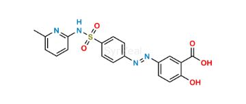 Sulfasalazine Impurity 1 is chemically 2-Hydroxy-5-((4-(N-(4-(N-(pyridin-2-yl)sulfamoyl)phenyl)sulfamoyl)phenyl)diazenyl)benzoic acid. Sulfasalazine Impurity 1 is supplied with detailed characterization data compliant with regulatory guideline. Sulfasalazine Impurity 1 can be used for the analytical method development, method validation (AMV), Quality Controlled (QC) application for Abbreviated New Drug Application (ANDA) or during commercial production of Sulfasalazine.