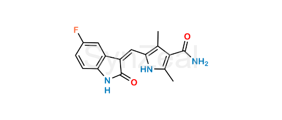 Sunitinib Amide (USP) is chemically 5-[(Z)-(5-Fluoro-1,2-dihydro-2-oxo-3H-indol-3-ylidene)methyl]-2,4-dimethyl-1H-pyrrole-3-carboxamide (as per USP). Sunitinib Amide (USP) is supplied with detailed characterization data compliant with regulatory guideline. Sunitinib Amide (USP) can be used for the analytical method development, method validation (AMV), Quality Controlled (QC) application for Abbreviated New Drug Application (ANDA) or during commercial production of Sunitinib .