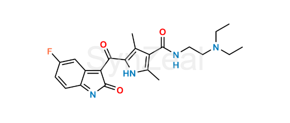 Sunitinib Ketone Impurity is chemically N-(2-(Diethylamino)ethyl)-5-(5-fluoro-2-oxo-2H-indole-3-carbonyl)-2,4-dimethyl-1H-pyrrole-3-carboxamide ;. Sunitinib Ketone Impurity is supplied with detailed characterization data compliant with regulatory guideline. Sunitinib Ketone Impurity can be used for the analytical method development, method validation (AMV), Quality Controlled (QC) application for Abbreviated New Drug Application (ANDA) or during commercial production of Sunitinib .