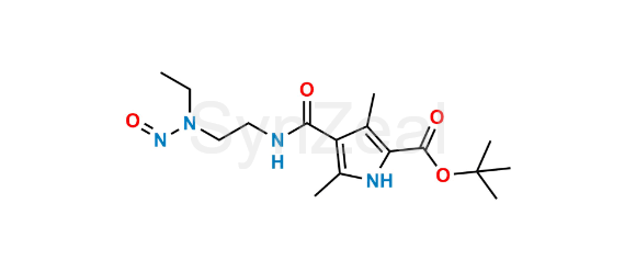 Sunitinib Nitroso Impurity 2 is chemically Tert-butyl 4-((2-(ethyl(nitroso)amino)ethyl)carbamoyl)-3,5-dimethyl-1H-pyrrole-2-carboxylate. Sunitinib Nitroso Impurity 2 is supplied with detailed characterization data compliant with regulatory guideline. Sunitinib Nitroso Impurity 2 can be used for the analytical method development, method validation (AMV), Quality Controlled (QC) application for Abbreviated New Drug Application (ANDA) or during commercial production of Sunitinib .