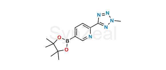Tedizolid Impurity 4 is chemically 2-(2-Methyl-2H-tetrazol-5-yl)-5-(4,4,5,5-tetramethyl-1,3,2-dioxaborolan-2-yl)pyridine. Tedizolid Impurity 4 is supplied with detailed characterization data compliant with regulatory guideline. Tedizolid Impurity 4 can be used for the analytical method development, method validation (AMV), Quality Controlled (QC) application for Abbreviated New Drug Application (ANDA) or during commercial production of Tedizolid.