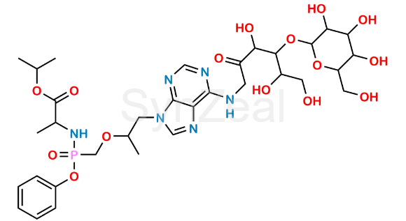 Tenofovie Alfenamide Amadori Rearrangement product is chemically Isopropyl (phenoxy(((1-(6-((3,5,6-trihydroxy-2-oxo-4-((3,4,5-trihydroxy-6-(hydroxymethyl)tetrahydro-2H-pyran-2-yl)oxy)hexyl)amino)-9H-purin-9-yl)propan-2-yl)oxy)methyl)phosphoryl)alaninate. Tenofovie Alfenamide Amadori Rearrangement product is supplied with detailed characterization data compliant with regulatory guideline. Tenofovie Alfenamide Amadori Rearrangement product can be used for the analytical method development, method validation (AMV), Quality Controlled (QC) application for Abbreviated New Drug Application (ANDA) or during commercial production of Tenofovir.