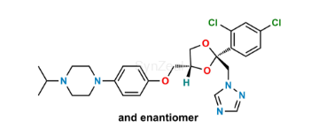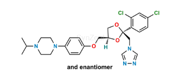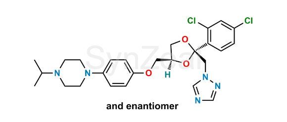 Nome Químico: 1-[4-[[(2RS,4SR)-2-(2,4-Dichlorophenyl)-2-[(1H-1,2,4-triazol-1-yl)methyl]-1,3-dioxolan-4-yl]methoxy]phenyl]-4-(1-methylethyl)piperazine (as per EP) ; cis-1-[p-[[2-(2,4-Dichlorophenyl)-2-(lH-1,2,4-triazol-1-ylmethyl)-1,3-dioxolan-4-yl]methoxy]phenyl]-4-isopropylpiperazine (as per USP)