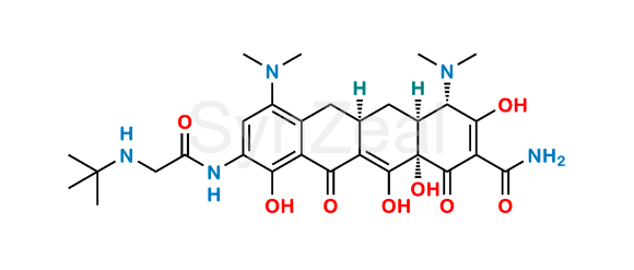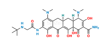 Nome Químico: (S,5aR,12aS)-9-[2-(tert-Butylamino)acetamido]-4,7-bis(dimethylamino)-3,10,12,12a-tetrahydroxy-1,11-dioxo1,4,4a,5,5a,6,11,12a-octahydrotetracene-2-carboxamide (as per EP) ; 2-Naphthacenecarboxamide, 4,7-bis(dimethylamino)-9-[[[(1,1-dimethylethyl)amino]acetyl]amino]-1,4,4a,5,5a,6,11,12a-octahydro-3,10,12,12a-tetrahydroxy-1,11-dioxo-, (4S,4aS,5aR,12aS) (as per USP)