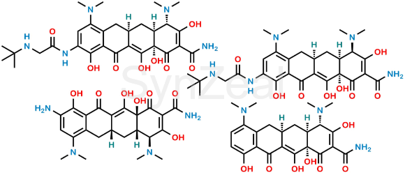 Nome Químico: (4R,4aS,5aR,12aS)-9-(2-(tert-butylamino)acetamido)-4,7-bis(dimethylamino)-3,10,12,12a-tetrahydroxy-1,11-dioxo-1,4,4a,5,5a,6,11,12a-octahydrotetracene-2-carboxamide compound with (4S,4aS,5aR,12aS)-4,7-bis(dimethylamino)-3,10,12,12a-tetrahydroxy-1,11-dioxo-1,4,4a,5,5a,6,11,12a-octahydrotetracene-2-carboxamide and (4S,4aS,5aR,12aS)-9-(2-(tert-butylamino)acetamido)-4,7-bis(dimethylamino)-3,10,12,12a-tetrahydroxy-1,11-dioxo-1,4,4a,5,5a,6,11,12a-octahydrotetracene-2-carboxamide and (4S,4aS,5aR,12aS)-9-amino-4,7-bis(dimethylamino)-3,10,12,12a-tetrahydroxy-1,11-dioxo-1,4,4a,5,5a,6,11,12a-octahydrotetracene-2-carboxamide (1:1:1:1)