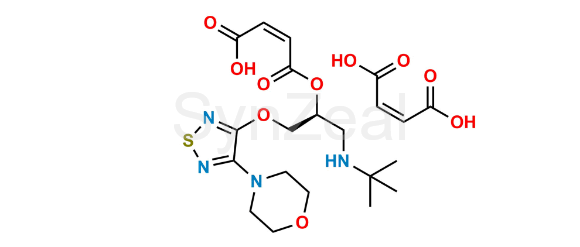 Nome Químico: (2Z)-4-[(1S)-1-[[(1,1-dimethylethyl)amino]methyl]-2-[[4-(morpholin-4-yl)-1,2,5-thiadiazol-3-yl]oxy]ethoxy]-4-oxobut-2-enoic acid maleate (1:1) (as per EP); (S,Z)-4-({1-(tert-butylamino)-3-[(4-morpholino-1,2,5-thiadiazol-3-yl)oxy]propan-2-yl}oxy)-4-oxobut-2- enoic acid maleate salt (1:1) (as per USP)