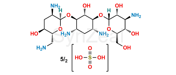 Nome Químico: O-3-Amino-3-deoxy-α-d-glucopyranosyl-(1→4)-O-[2,6-diamino-2,3,6-trideoxy-α-d-ribo-hexopyranosyl-(1→6)]-2-deoxy-l-streptamine, sulfate (2:5) (salt)