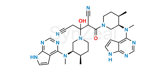 Nome Químico: 3-Hydroxy-3-((3R,4R)-4-methyl-3-(methyl(7H-pyrrolo[2,3-d]pyrimidin-4-yl)amino)piperidin-1-yl)-2-((3R,4R)-4-methyl-3-(methyl(7H-pyrrolo[2,3-d]pyrimidin-4-yl)amino)piperidine-1-carbonyl)pentanedinitrile