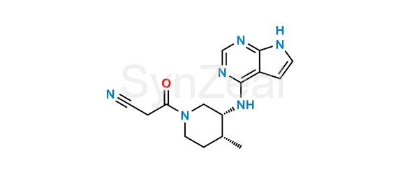 N-Desmethyl Tofacitinib is chemically 3-[(3R,4R)-4-methyl-3-(7H-pyrrolo[2,3-d]pyrimidin-4-ylamino)piperidin-1-yl]-3-oxopropanenitrile. N-Desmethyl Tofacitinib is supplied with detailed characterization data compliant with regulatory guideline. N-Desmethyl Tofacitinib can be used for the analytical method development, method validation (AMV), Quality Controlled (QC) application for Abbreviated New Drug Application (ANDA) or during commercial production of Tofacitinib.
